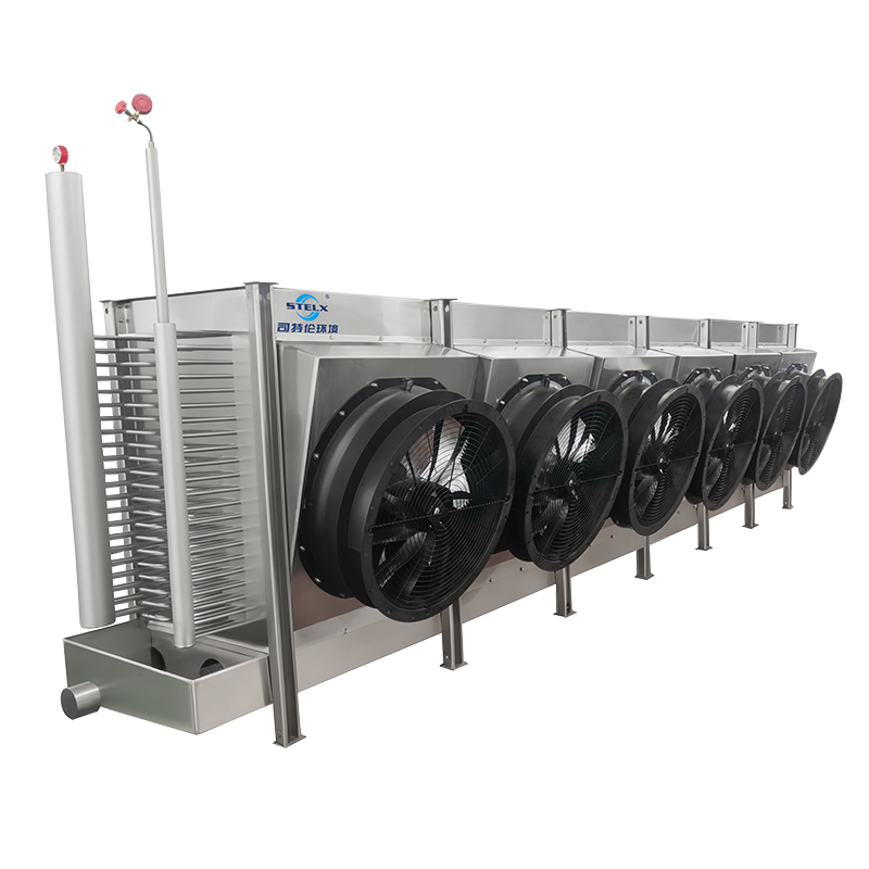 Equipado com sistema de degelo multimodo (elétrico, gás quente, água, glicol, etc.), o evaporador permite um degelo rápido e uniforme para evitar acúmulo de gelo. A bandeja de água profunda e inclinada evita transbordamentos e gotejamentos, mantendo um ambiente operacional limpo. Além disso, estruturas de suporte opcionais permitem montagem flexível no teto ou no chão , adaptando-se a vários layouts de câmaras frigoríficas e restrições espaciais – seja para instalações de produção em pequena escala ou grandes centros de distribuição.